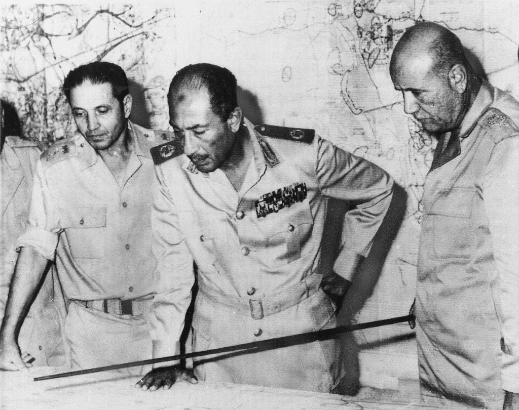 埃及薩達特總統與埃及將領討論如何奪回西奈半島。(圖片來源:AP Photo)