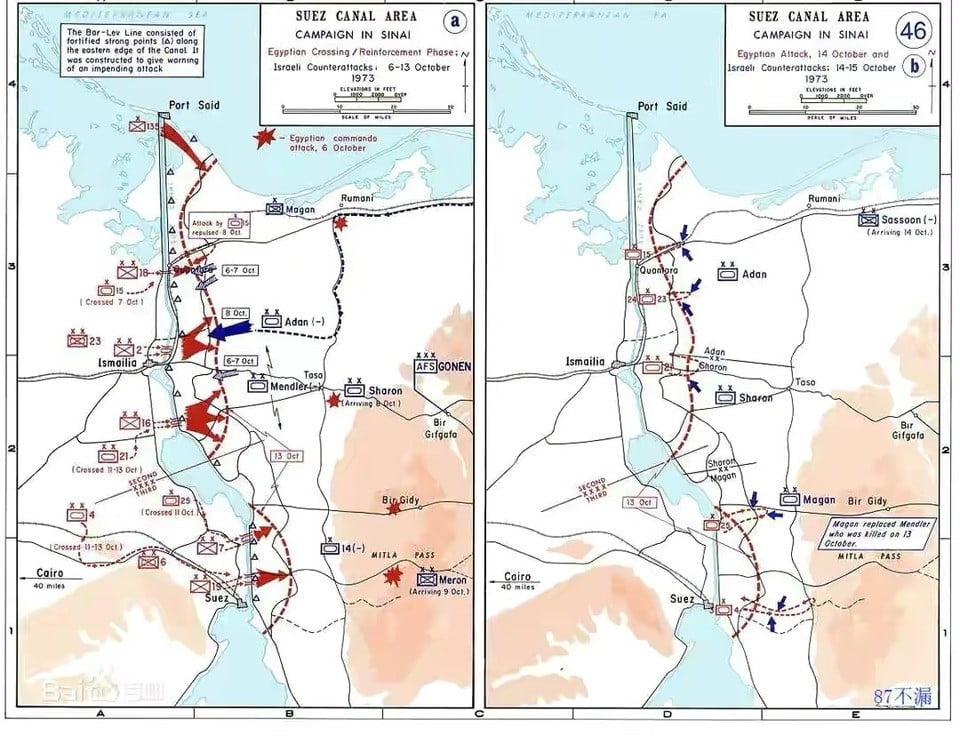 埃及進攻西奈半島路線圖(圖片來源:Wikipedia)