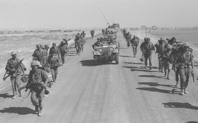整兵後穿越蘇伊士運河,以色列傘兵沿著開羅公路行進。(圖片來源:Ron Ilan / GPO)