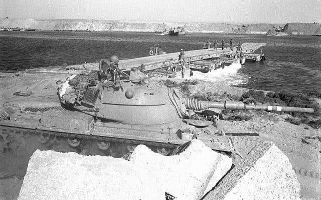 以色列裝甲車使用臨時浮橋跨越蘇伊士運河(圖片來源:Israel Defense Forces Archive)