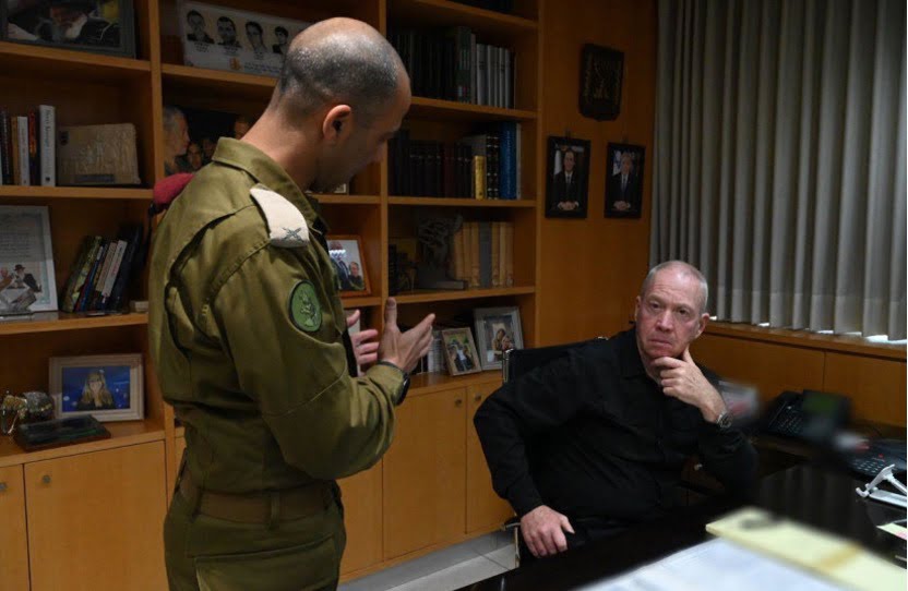 2023年5月9日,以色列國防部長約阿夫.高蘭(Yoav Gallant)在「盾箭行動」開始時與以色列國防軍官員交談。(照片來源:ARIEL HERMONI/國防部)