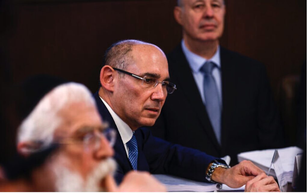 2023年2月23日,以色列央行行長阿米爾.亞龍在耶路撒冷總理辦公室出席內閣會議。(照片來源:RONEN ZVULUN/POOL/AFP)